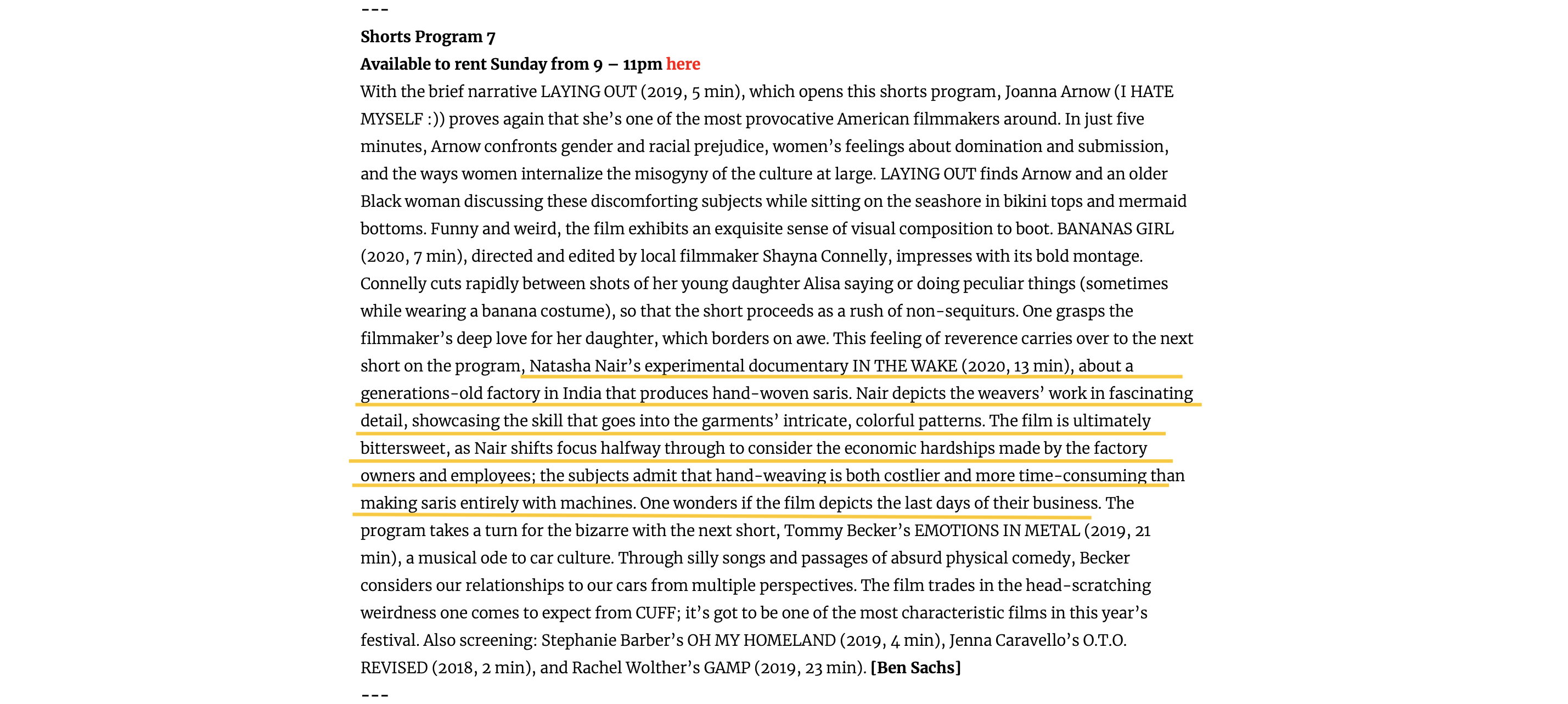 This short film is a portrait about handloom weavers of Kerala India, and their resilience in the face of cultural displacement, consumerism and the aftermath of massive floods that disrupted their livelihood.